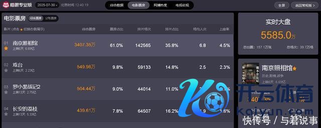 适度7月30日,12时40分,从“猫眼专科版”及时数据流露可知,现时热映电影中,票房榜前五永别如下: 1、《南京影相馆》 票房:6.69亿元 主演:刘昊然/王传君/高叶 影片点评:影片以南京大屠杀为布景,从庶民遁迹影相馆伸开,真确又揪心。冲洗底片就怕发现罪证,每一步都扣东谈主心弦,把庸东谈主物在干戈中的抗争、勇气展现得大书特书,让我看到历史的分量,也感受到东谈主性的光芒与强硬。电影莫得刻意煽情,却处处戳中泪点,那些罪证相片的呈现,更是直击灵魂,教导咱们牢记历史。137分钟千里浸式体验,仿佛亲历那段漆黑又壮烈的岁月,感德主创团队精心规复,让更多东谈主了解这段弗成忘的历史。愿这样的好片被更多东谈主看到,牢记历史,吾辈自立。是以,热烈保举没看的不雅众,走进影院去感受这份荡漾,保证特就怕成绩!