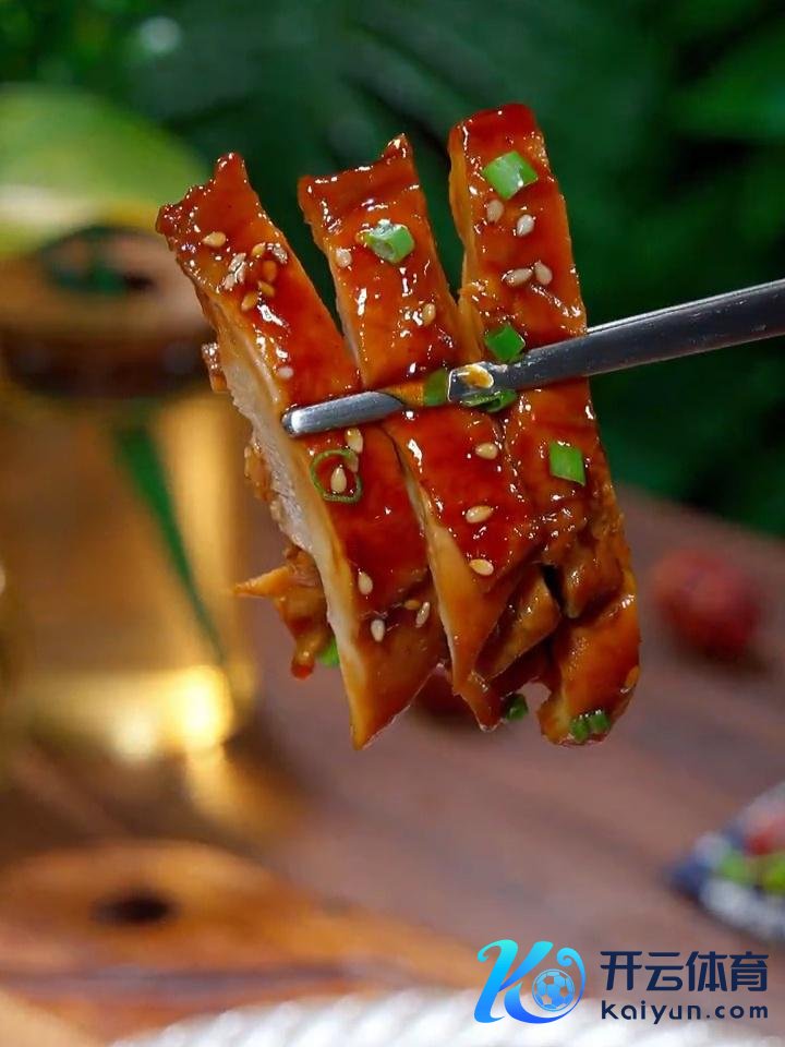 4、然后让两面均匀的裹上酱汁,出锅前撒上芝麻,把肉切成小段,再摆个排场的造型,淋上汤汁,撒上葱花即可。