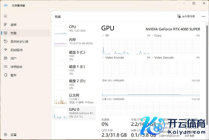 显卡驱动是显卡性能发达的枢纽。若新电脑未装置显卡驱动,系统将调用核显或以低配景况初始。小伙伴们可在职务不息器中点击【性能】,搜检“GPU0”是否存在于性能面板中,若不存在,则需前去显卡官网下载对应驱动。