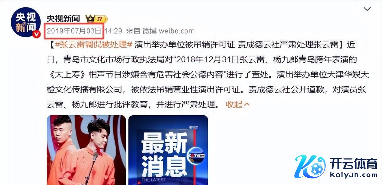 2019年7月3日,青岛文化部门对德云社的张云雷和杨九郎进行了严肃处罚。