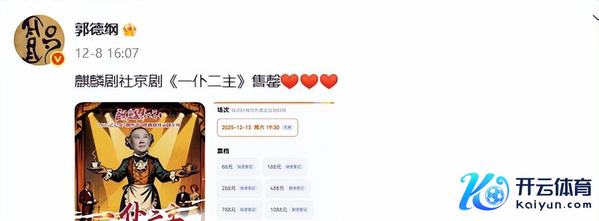12月8日,郭德纲还在酬酢平台上传了个好音信,德云社的“钢丝节”门票全部卖完啦。