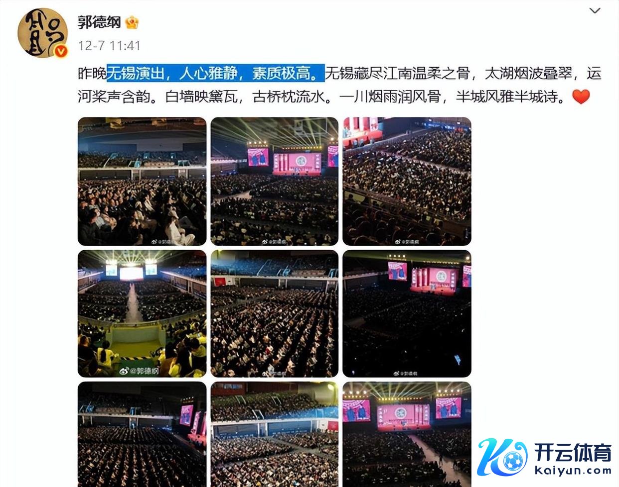 就在12月7日那天,发了一条说“无锡献艺,东谈主心雅静,修养极高”的动态。