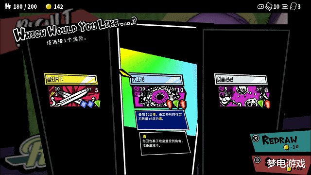 玩家的护盾取得技术极为珍稀,主要来源于每回合三选一的祝愿恶果,且数值较低:血条HP共有300然则护盾的数值仅有3到6点,致使还仅仅局内的祝愿一次性恶果。