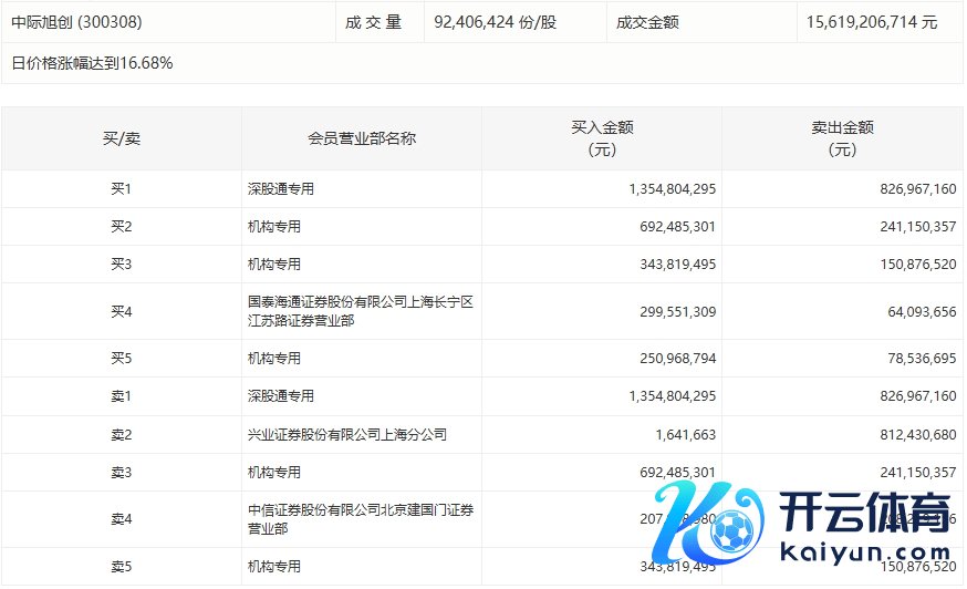 中际旭创本日涨16.68% 深股通席位买入13.55亿元并卖出8.27亿元中际旭创本日涨16.68% 深股通席位买入13.55亿元并卖出8.27亿元