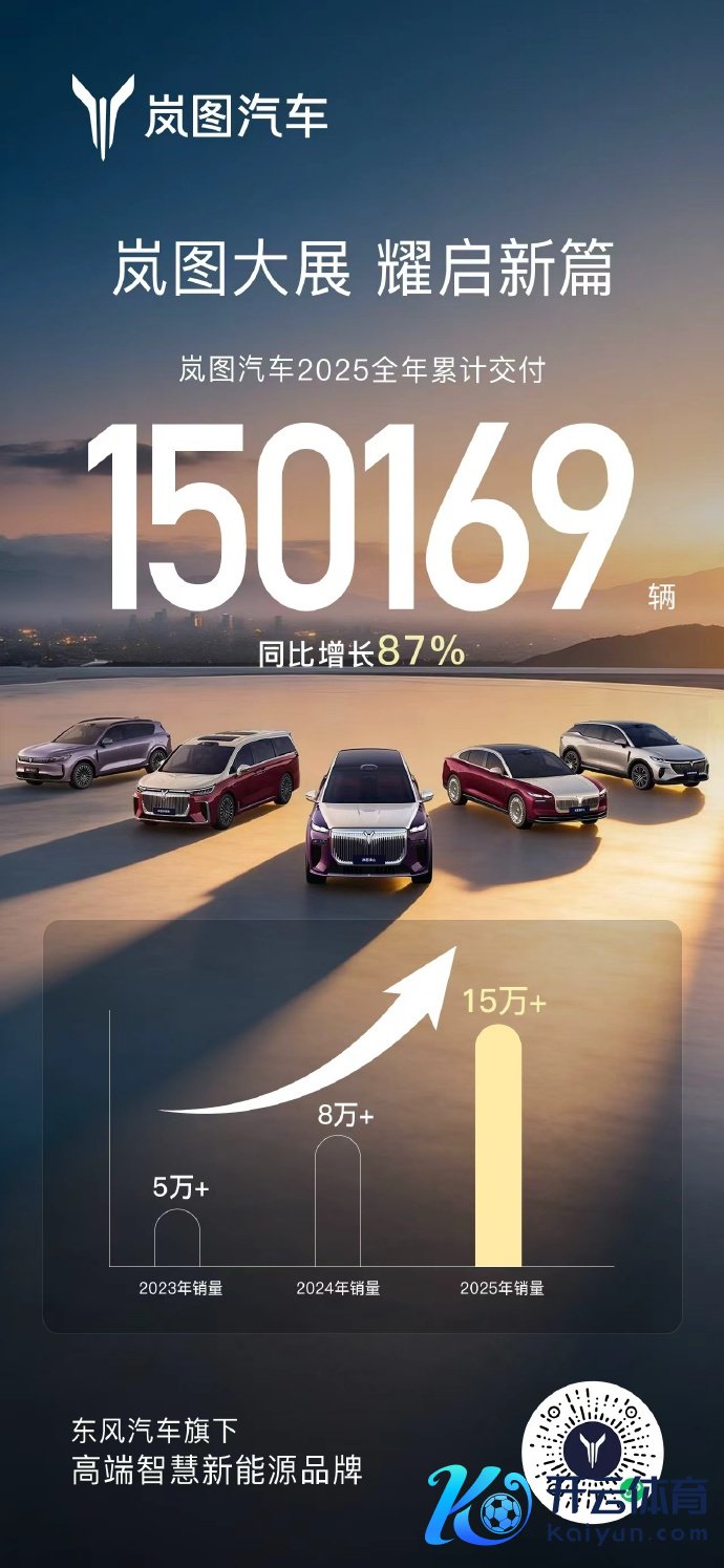 岚图汽车2025年累计拜托15万辆,同比增长87%岚图汽车2025年累计拜托15万辆,同比增长87%